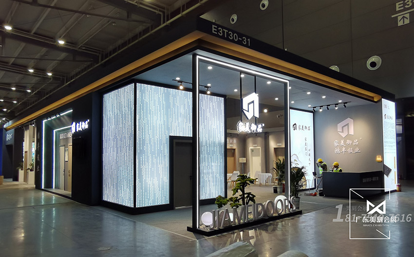 本屆長沙建博會中,家美門業(yè)以「誘.見」為主題,深度解讀門與建筑、人居、自然環(huán)境的關(guān)系,在新家居時代的風潮下,賦予全新的蘊意。所以美刻會展在展臺設(shè)計期間中用黑白灰三種顏色,以恬淡色彩與簡約線條為設(shè)計重點,打造出簡約風格的展臺,營造出令人放松的愜意生活氛圍。