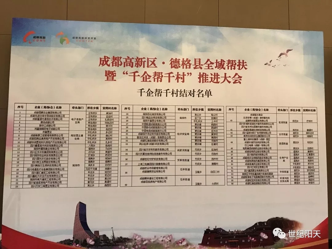 導(dǎo)語(yǔ):12月7日上午9點(diǎn),成都市高新區(qū)“對(duì)口幫扶德格縣全域幫扶暨千企幫千村”精準(zhǔn)扶貧行動(dòng)推進(jìn)大會(huì)在通威國(guó)際中心召開(kāi)。省、市、區(qū)有關(guān)領(lǐng)導(dǎo)共同出席了本次大會(huì)。成都世紀(jì)陽(yáng)天旗下互聯(lián)網(wǎng)教育品牌世紀(jì)守護(hù)CEO唐紅林先生代表公司參加并聽(tīng)取了會(huì)議的主要內(nèi)容。